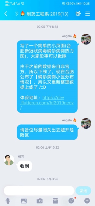 防紧急情况发生,及时更新所有成员联系方式,并将所有联系方式进行群内公开,要求教师提供紧急联系人和备用联系号码,以求通知能够按时及时准确传达到每个人。同时积极查阅各类新闻,查看各种对疫情具有预防作用的小程序,分享疫情区域小程序,并及时提醒老师尽量减少出门,一定要出去也要避开疫情所在区域,避免疫情的扩散和传播。