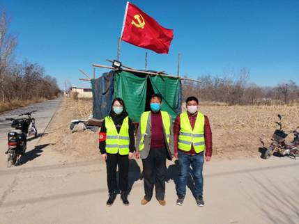 党旗下与村共产党员在村西南角执勤。
