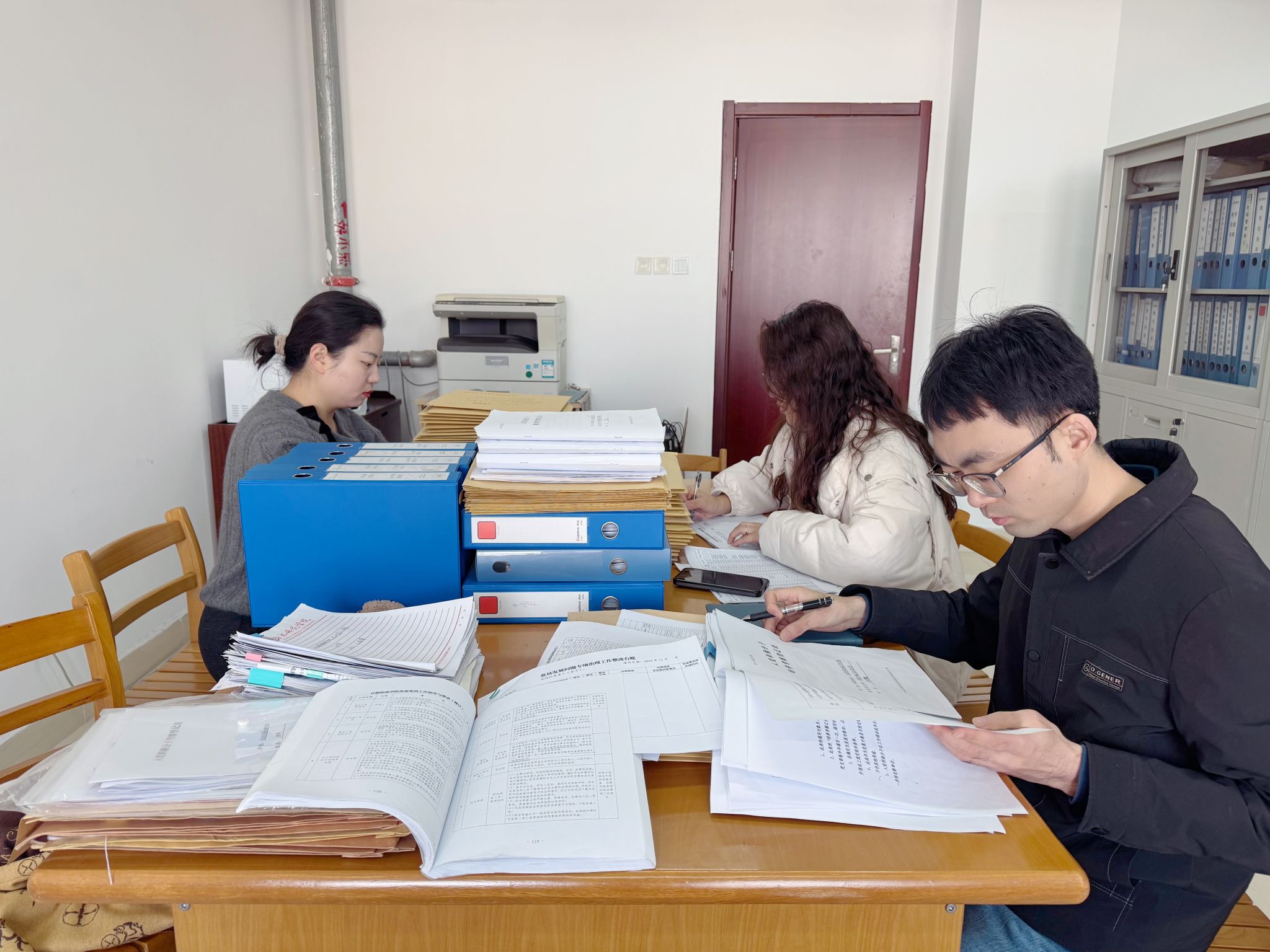 互查过程中,大家认真细致查阅了支部会议记录本、党员档案材料、支部公示材料等资料,重点检查了入党材料是否齐全、入党程序是否规范、填写内容是否准确等方面的情况。针对检查中发现的问题,大家热烈交流,积极建言献策。同时,各支部也梳理了工作中的经验,进行了交流推广。