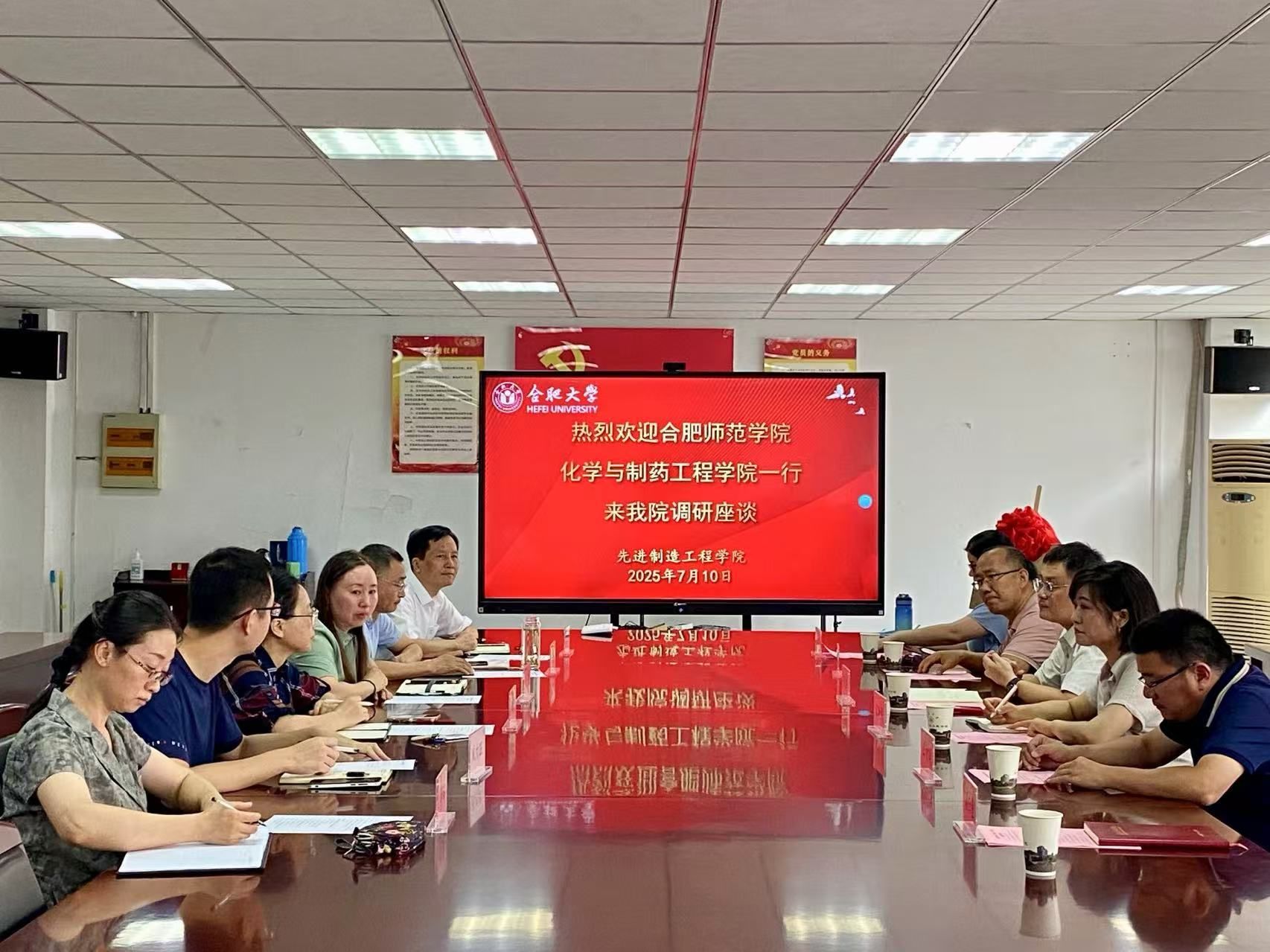 7月10日上午,williamhill英国官网党委书记刁文彬,党委副书记、纪委书记朱晓熠,教工支部和学生支部书记等一行赴合肥大学先进制造工程学院学习调研党建工作。合肥大学先进制造工程学院党委书记杜娟,党委副书记、院长胡学友,党委副书记、纪委书记蔡灵美及党支部书记代表、组织员等参加调研座谈会。