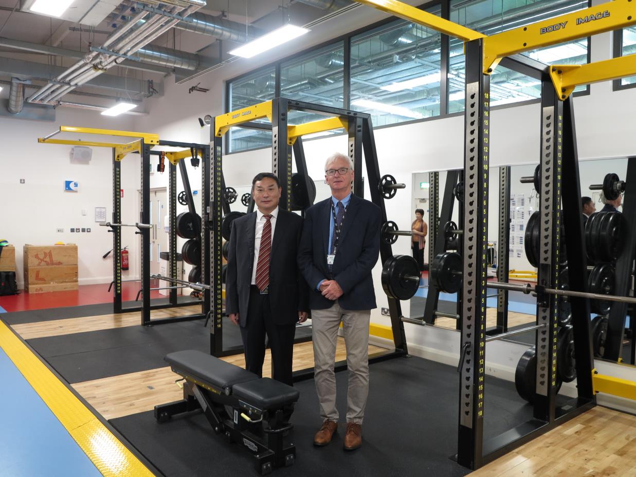随后李进华一行考察了学校的运动馆、健身房等场地,并就运动生理与护理等领域合作进行探讨。