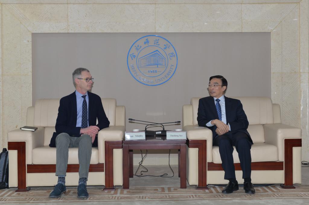 孙道胜代表学院对远道而来的客人表示热烈的欢迎;对两校合作取得的阶段性成果给予了高度赞扬,并表示和阿斯隆理工学院一起致力于推进双方的合作,努力提高办学质量。墨菲博士感谢学院对中外合作办学项目的支持,并简要汇报我院2015级学生在爱尔兰学习近况。墨菲博士认为两校的国际合作,为阿斯隆理工学院带去了中国元素,同时也为中国学生提供走向世界舞台的机会。