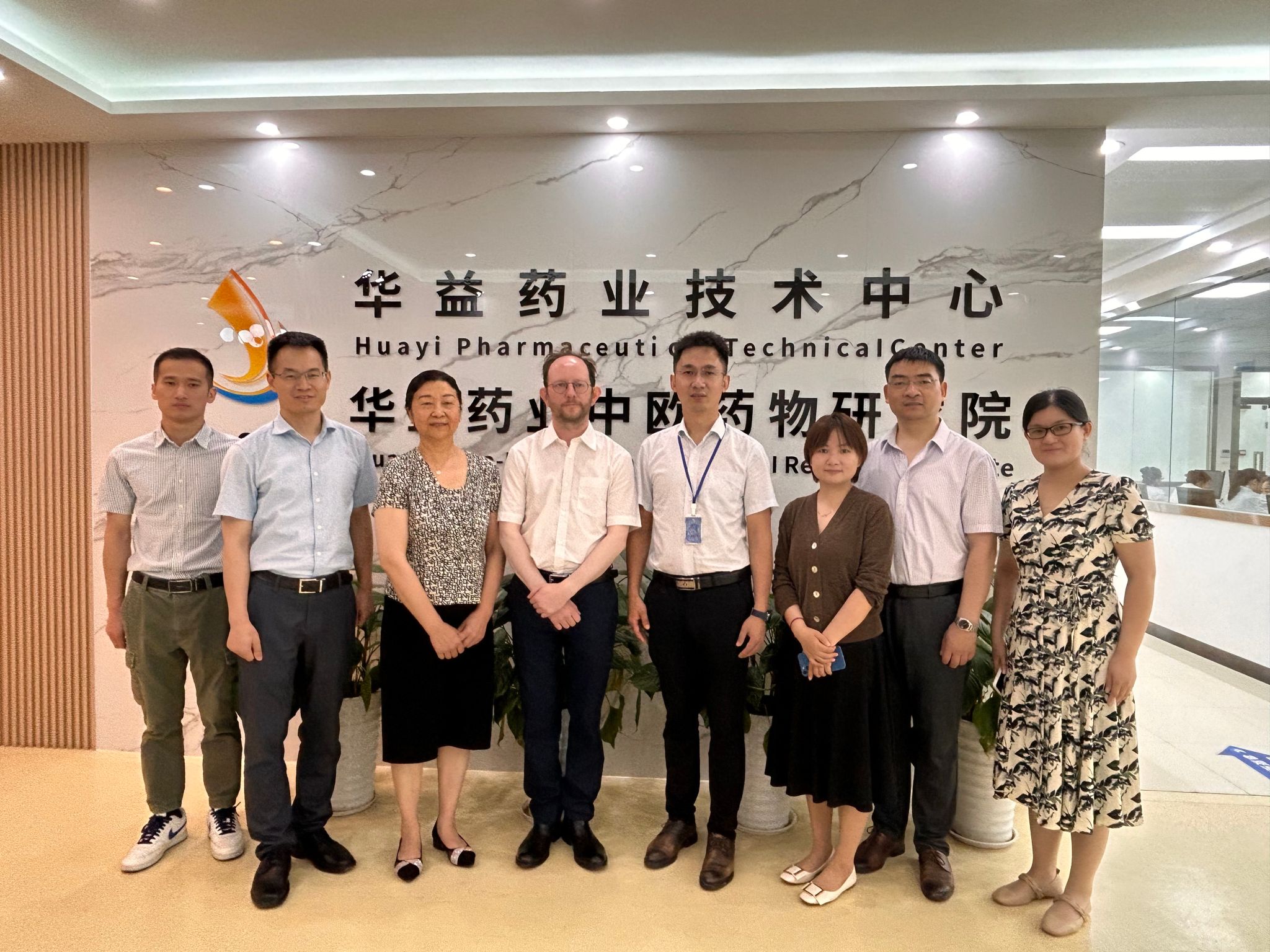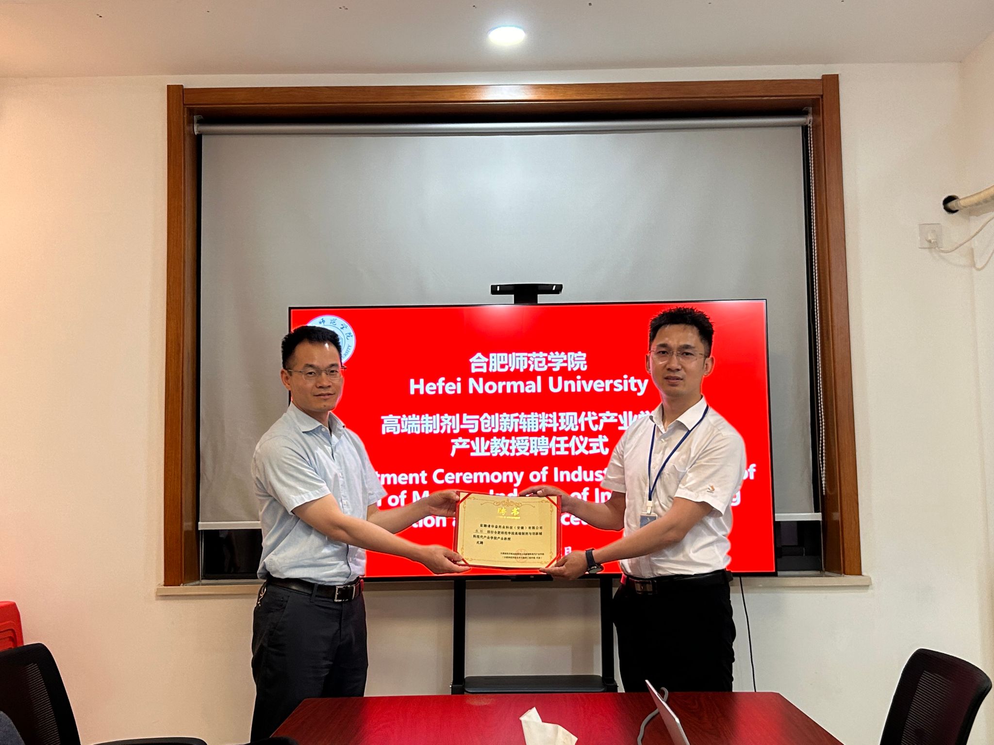 06月12日上午,WilliamHill官方网站williamhill英国官网党委书记李红、院长朱金苗、副院长董雄辎携制药工程系主任及专业教师一行,赴华益药业科技(安徽)有限公司,参加WilliamHill官方网站与华益药业科技(安徽)有限公司等联合举办的“高端制剂与创新辅料现代产业学院产业教授聘任仪式”。华益药业科技(安徽)有限公司产业教授代表操铖、产业讲师代表周红蕾等出席会议,爱尔兰香农理工大学制药科学与生物技术系代表Nicholas Mullins出席会议,我院制药工程系代表参加会议,会议由华益药业科技(安徽)有限公司产品研发总经理操铖主持,公司外交经理吴莹莹翻译。