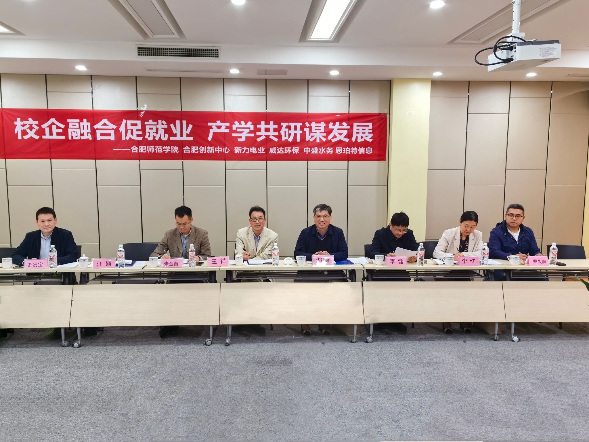 会后,华银峰与安徽新力电业科技咨询有限责任公司、安徽威达环保科技股份有限公司等4家企业代表进行“大学生就业创业基地”和“产学研合作”的揭牌仪式,
