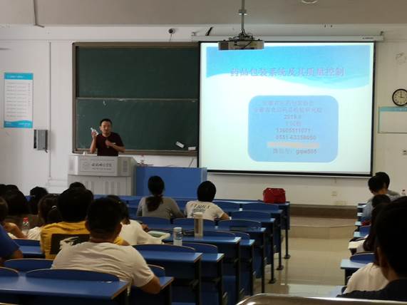 9月12日,安徽省食品药品检验研究院药包材检测室主任王国勤,合肥工业大学化学与化工学院副院长、博士生导师丁运生教授来我校分别作题为《药品包装系统及其质量控制》《面向工程应用的科学研究与学生培养》的学术报告,讲座在逸夫楼西阶二教室举行。本次讲座由化学与化学工程学院制药工程系主任郑斌主持,制药工程专业教师、学生一同聆听学习。