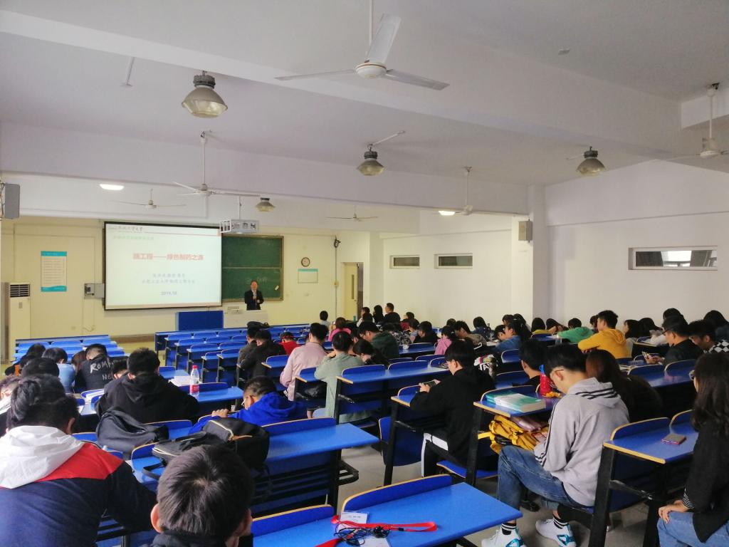 10月24日,安徽农业大学博士生导师、生物质分子工程中心主任汪钟凯教授,合肥工业大学博士生导师张洪斌教授受邀我校分别作题为《生物质高分子及仿生弹性体》《酶工程——绿色制药之源》的学术报告。讲座在锦绣校区逸夫楼A304教室举行,讲座由化学与化学工程学院制药工程系主任郑斌主持,制药工程专业教师、学生一同聆听学习。
