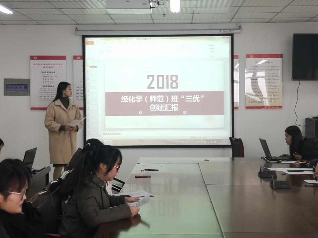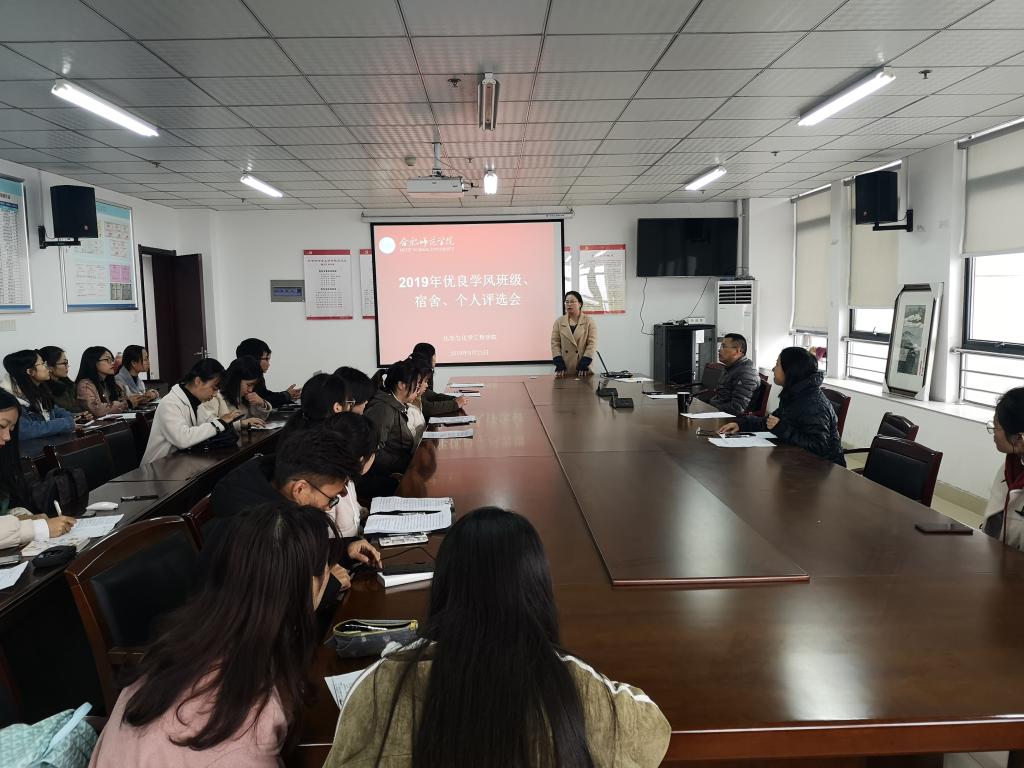 为进一步加强我院学风建设,对2018年三优创建结果的检验。11月27日中午12:00,我院于行知楼1402召开2019年优良学风班级、宿舍、个人评选汇报会。化学与化学工程学院党总支副书记许祝青、辅导员老师张晖、翟媛媛、原嘉清担任本次汇报会评委,各班级、寝室代表及个人通过PPT展示进行汇报。