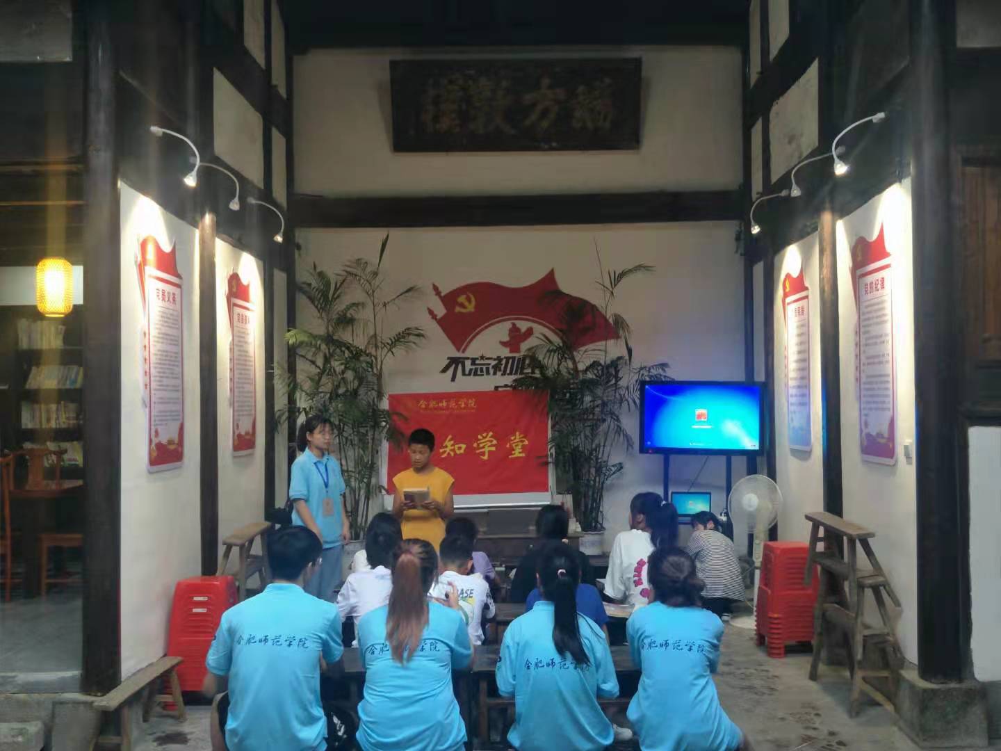 本网讯 为落实“永远跟党走,奋进新时代”主题实践活动,秉承“爱满天下,知行合一”的校训精神,7月15日,由化学与化学工程学院牵头,数学与统计学院、外国语学院、文学院等7名小先生共同组建,黄山市黄山区仙源镇初心行知学堂正式开课。