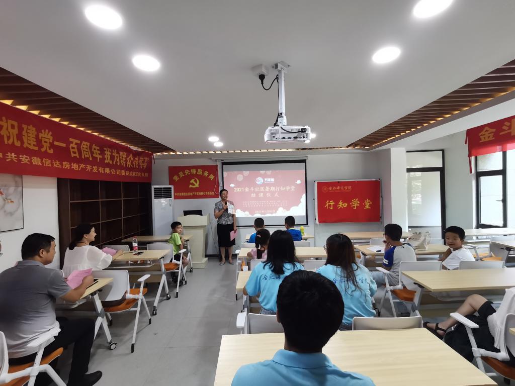 在仪式上,李红代表学院党政对社区的大力支持,家长们的真诚信任,小学员们的积极配合,小先生们的认真工作表示感谢;介绍了学院、学校行知学堂建设的发展历程,通报了本年度建设概况;邀请社区领导、家长、小学员到学校参观,感受学校的行知文化氛围。