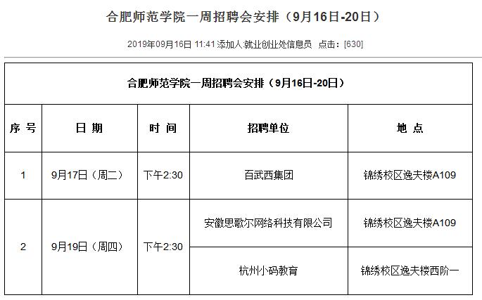 一周招聘会安排9.16-20