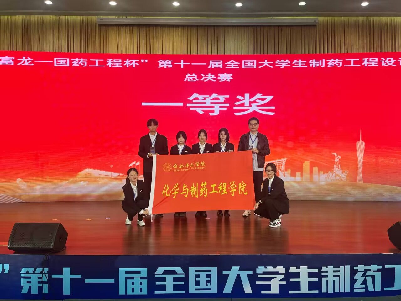 由全国药学类院校大学生专业技术与实验技能竞赛组委会主办的第十一届“东富龙-国药工程杯”全国大学生制药工程设计竞赛全国总决赛于2023年11月26日在广东工业大学落下帷幕,我校选派的海底小纵队、我们都队和碱基互补配对队三支代表队分别荣获全国一、二、三等奖,其中,由王喜豪、张子丹、邓姊慧、周春莲、北怡梦和张艺馨组成的海底小纵队(指导老师:田恒、王艳苹)荣获全国一等奖。