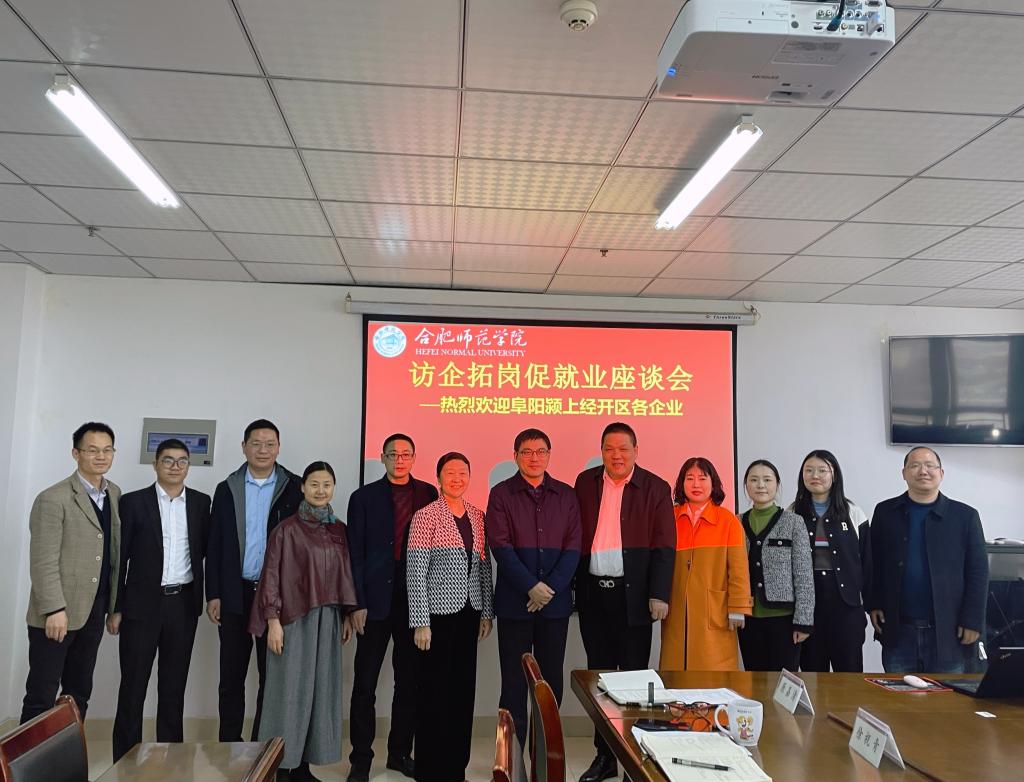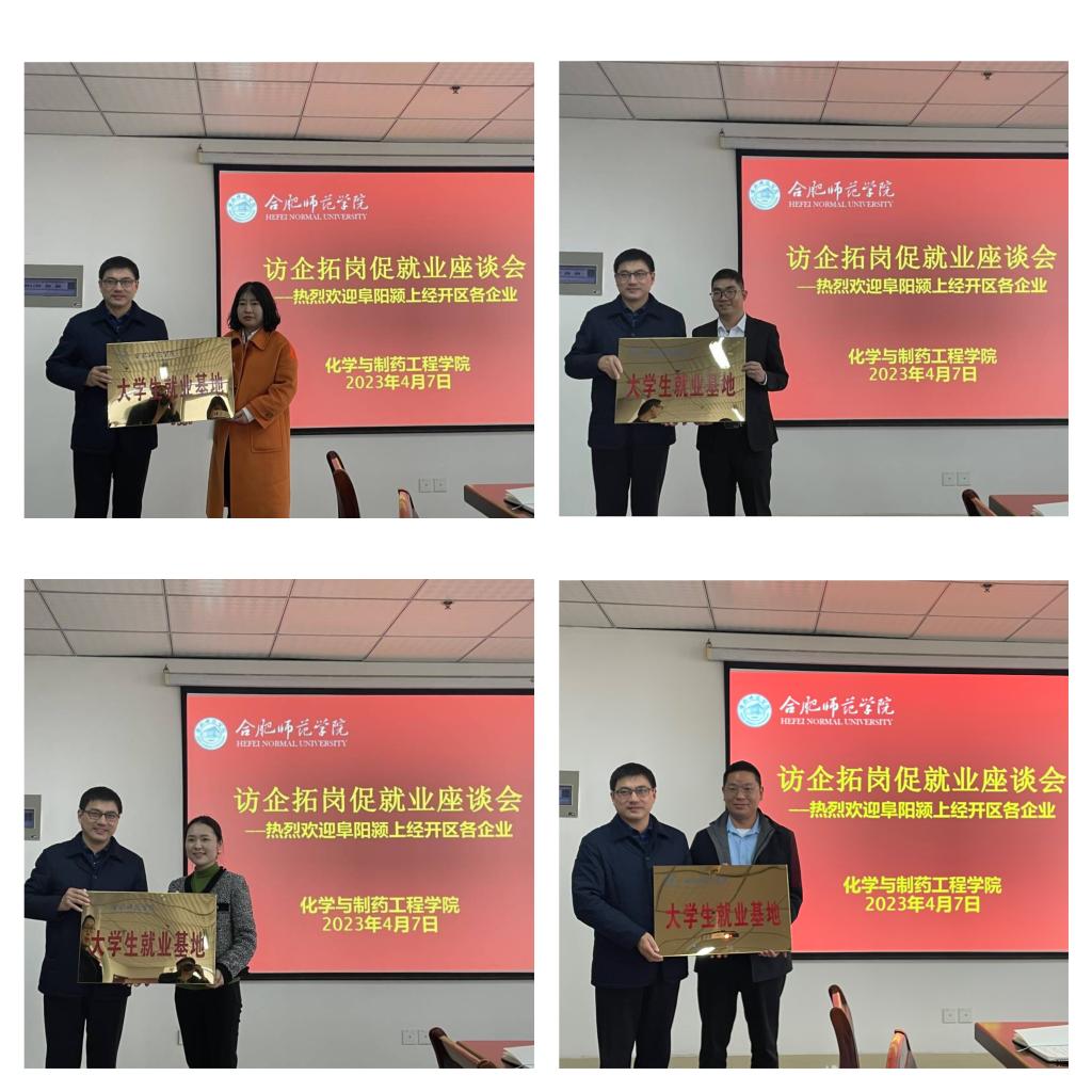 倪峰介绍了颍上县人民政府为留住企业和人才,颁布了《颍上县促进企业人才建设十六条》,加快集聚产业急需紧缺人才和实用技能人才引进培育工作的力度。颍上经开区和各企业将进一步加强与化院合作,促进产教融合平台建设,聚焦县里“3+2+1”产业链,引进人才,为就业学生提供优质服务、良好的工作环境和安居保障。接着,安徽觅拓材料科技有限公司、安徽富瑞雪化工科技股份有限公司等6家企业分别就企业招聘人才需求做了介绍。