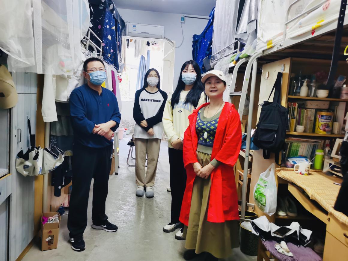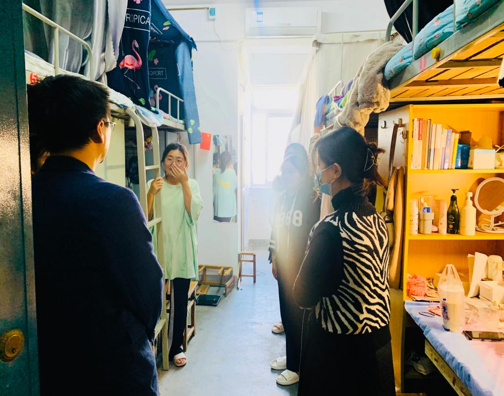 走访过程中,徐祝青察看了学生宿舍环境,对学生生活、学习情况进行了访谈交流。在详细了解了大家的学习规划、生活及心理状况后,她叮嘱同学们要珍惜时间,全身心投入学习生活,努力学好每门功课,增长本领才干,成为品学兼优的好青年;同时,要筑牢健康防线意识,加强体育锻炼,为即将开展的健康体测做好准备。在毕业班宿舍,她勉励考研的同学们,在接下来不到两个月的时间里,不放松不懈怠,刻苦努力,翻盘复习,提升效率,争取好的成绩;对有就业创业意愿的同学,要求积极投递简历,争取面试、实习等机会,为就业创业增加“砝码”。