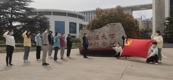 秉承“爱满天下、知行合一”的校训,学生党员在校训石前,举起右手,以铿锵有力的声音进行入党誓词宣读。意寓履行党员义务,执行党的决定,为人民教育事业奋斗终身。(化学与化学工程学院:王庆林)