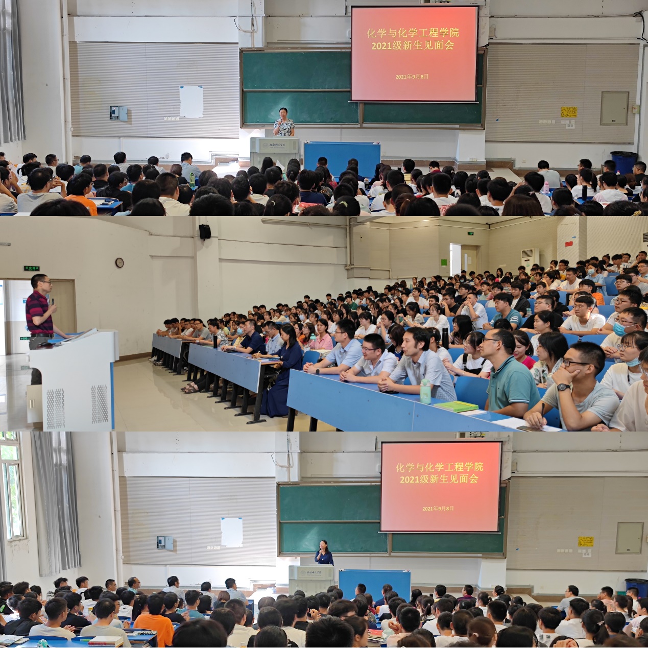 9月8日下午,化学与化学工程学院在逸夫楼西阶一教室召开2021级新生见面会,院党政领导、系主任、学业导师、党政秘书、辅导员和全体新生参加。会议由院党委副书记徐祝青主持。