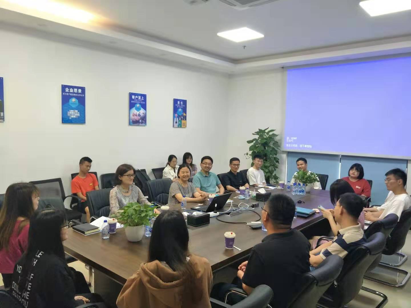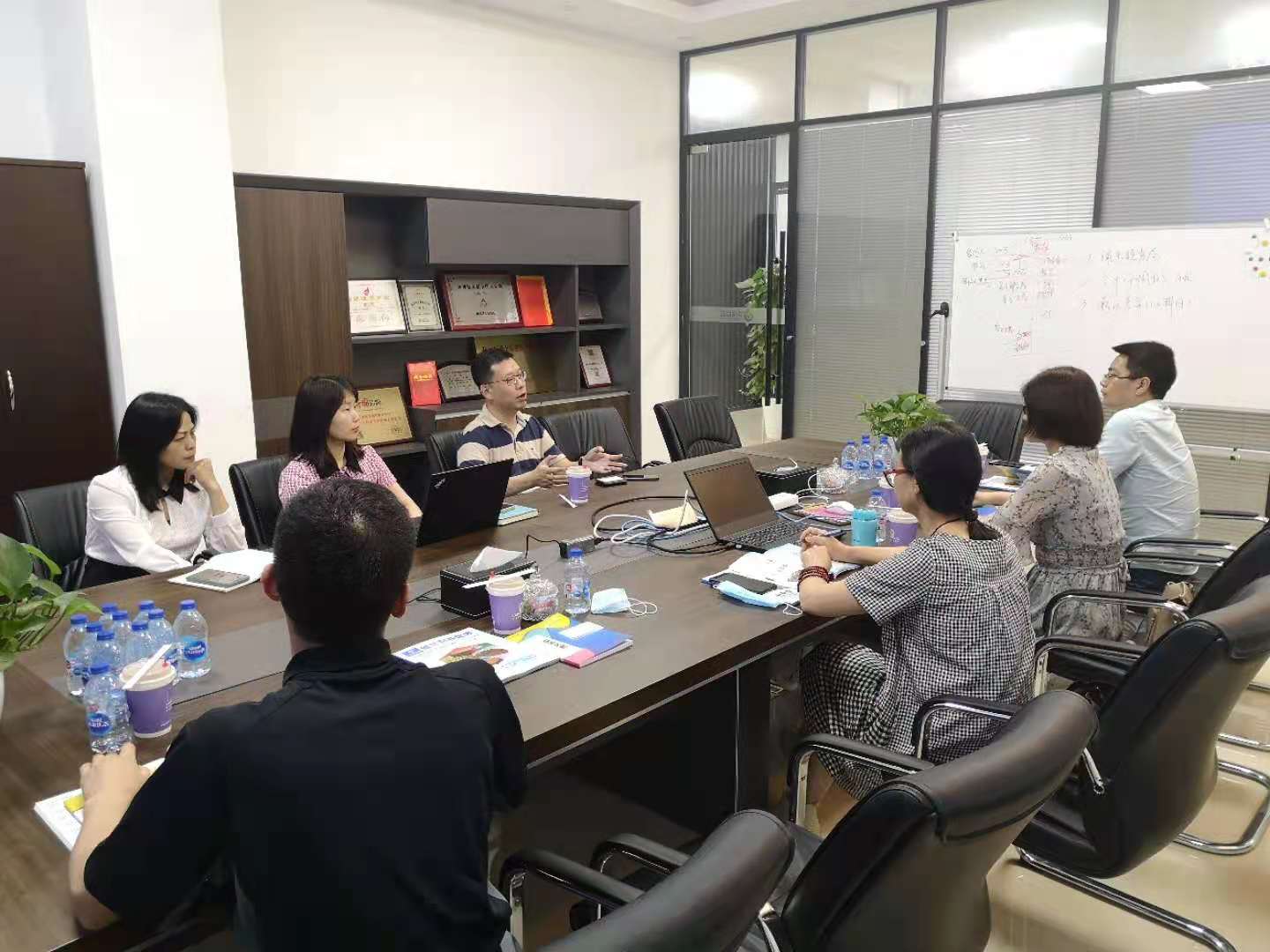 徐祝青就学生实习情况与毕得王超副总裁、人事王春侠、实习指导老师等交流,在学生实习环境、实习内容做了详细了解,对良好的学生生活情况给予了肯定。与公司在大学生就业实习基地方面达成合作,做好校企合作协同发展。