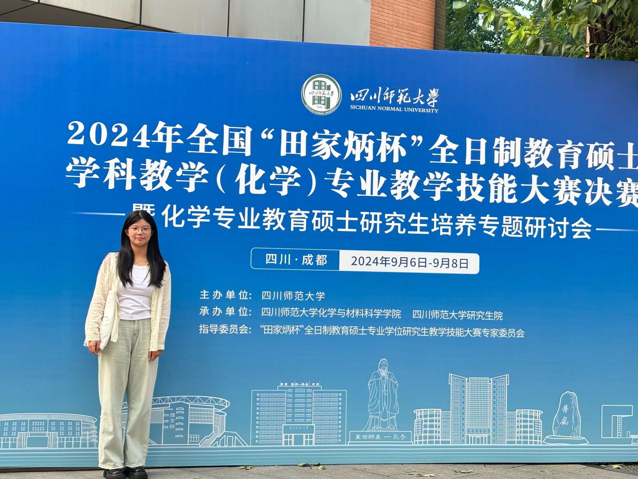 2024年9月6日-8日,全国“田家炳杯”全日制教育硕士学科教学(化学)专业教学技能大赛决赛在四川师范大学举行,本次大赛的初赛共有来自全国87所高校的400余名全日制学科教学(化学)专业研究生参加,参赛高校占2023年招收学科教学(化学)专业教育硕士院校的95%。通过初赛的选拔,共有81所高校198名全日制学科教学(化学)专业研究生进入决赛,我院2023级张婉婷同学在导师方璐和董雄辎老师的指导下,顺利进入决赛。经过激烈角逐,最终张婉婷同学荣获全国优秀奖。