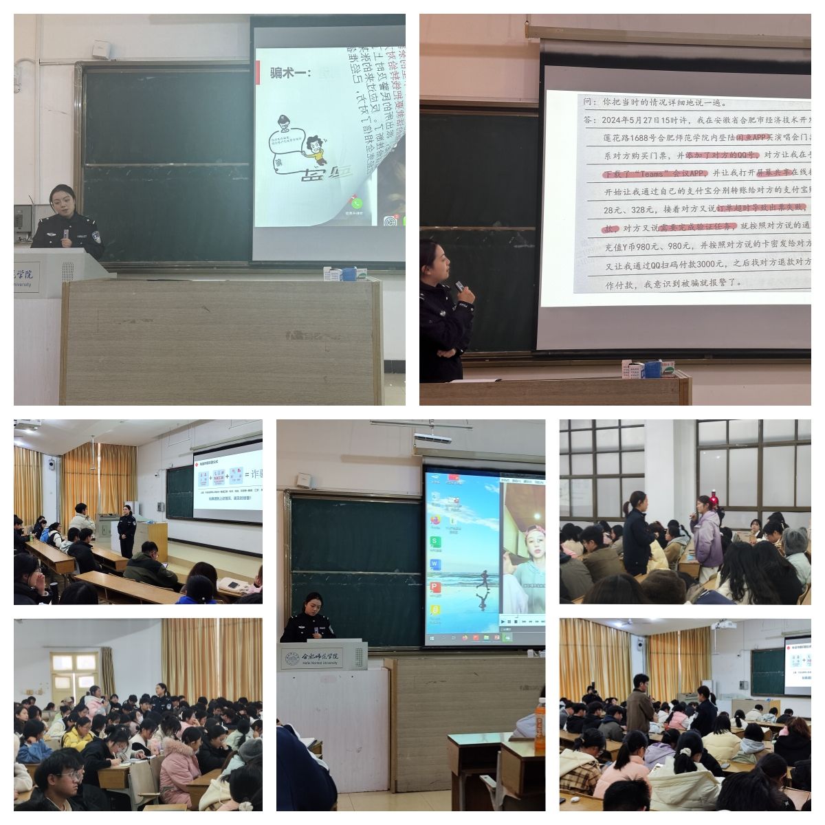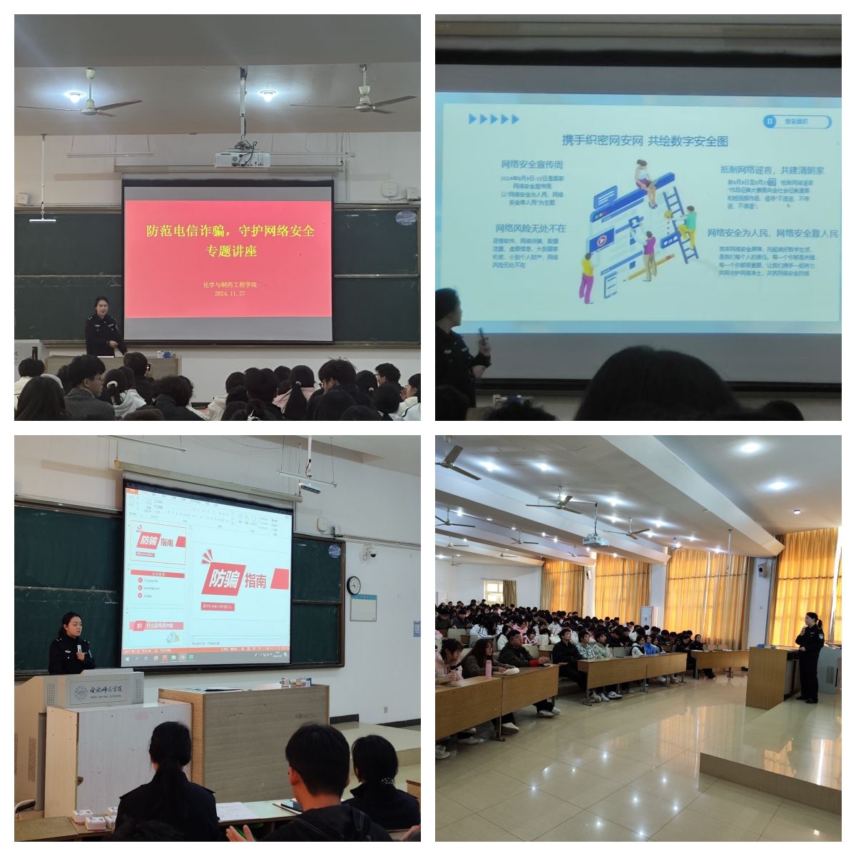 为进一步筑牢学生防范电信诈骗意识,加强学生识骗防骗能力,规范使用网络,守护个人信息安全。williamhill英国官网联合校保卫处、合肥市公安局经开分局于11月27日下午在博约楼101阶梯教室开展了防范电信诈骗,守护网络安全主题教育活动。我院新生辅导员、新生学业导师及300余名学子参与了本次主题教育活动。