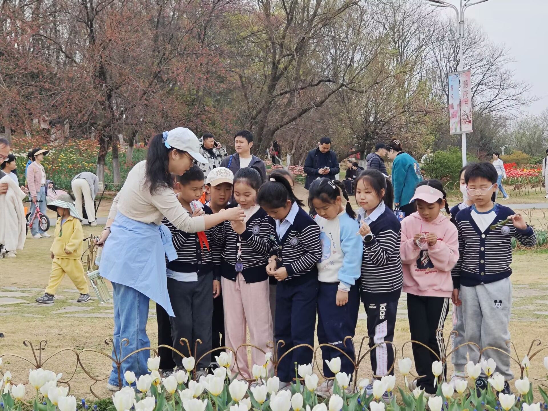 活动于当日上午在合肥植物园内举行,制药工程系教工党支部成员与习友路小学22级2班微光小队的师生们共同参与。活动现场,制药工程系教工党支部成员充分发挥专业优势,围绕花朵的生长过程、结构与功能、以及花朵在生态系统中的作用等方面展开,通过现场讲解和互动问答环节,让孩子们在轻松愉快的氛围中学习了自然科学知识。