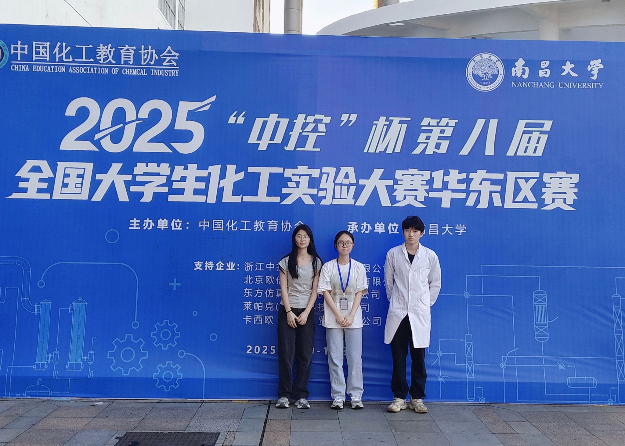 近日,由中国化工教育协会主办、南昌大学承办的“中控”杯第八届全国大学生化工实验大赛华东区赛圆满落幕。来自华东地区66所高校的优秀学子同台竞技,展开激烈角逐。我校williamhill英国官网选派的代表队凭借扎实的专业功底、出色的实践能力和稳定的临场发挥,在137支队伍中脱颖而出,成功跻身前56名。潘静芸、刘佳俊、祁语欣三位同学在林静、李娜等教师的指导下最终荣获华东区赛二等奖,创下我校在该赛事中的最佳战绩。