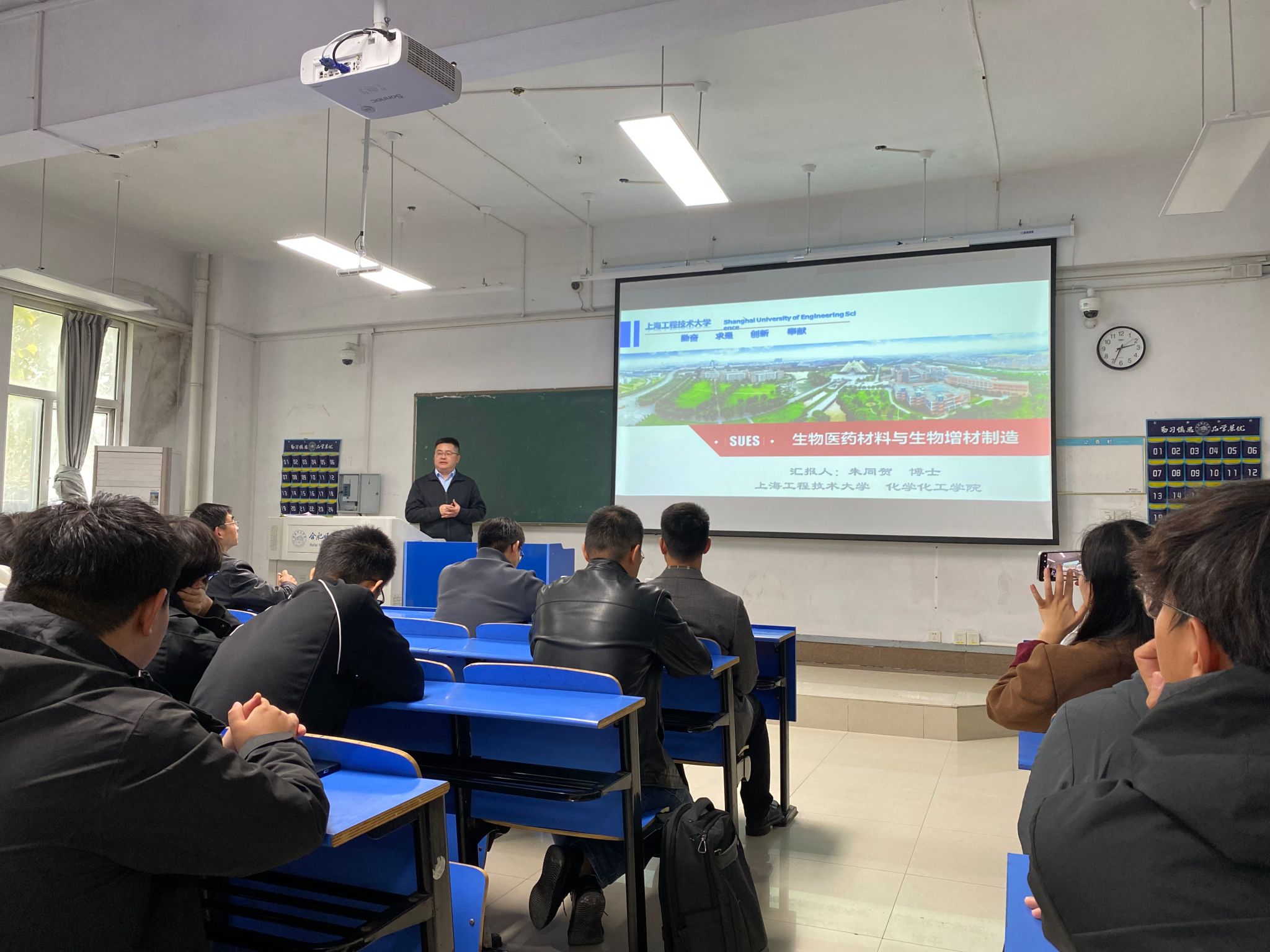 本网讯 10月31日下午,williamhill英国官网2012届优秀校友、上海工程技术大学教授朱同贺应邀返回母校,在锦绣校区逸夫楼A103为以williamhill英国官网师生为主的全校师生作了题为“生物医药材料与生物增材制造”的讲座。讲座由williamhill英国官网院长朱金苗主持,学院副院长董雄辎、教师代表及相关专业学生参加。