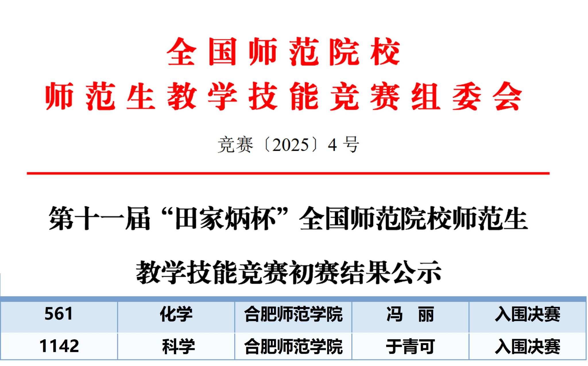 另悉,在月初刚刚结束的安徽省师范生技能竞赛中,冯丽同学稳定发挥,以创新的教学思路、扎实的专业功底和沉稳的临场表现,在全省众多优秀师范生中崭露头角,成功斩获安徽省师范生技能竞赛一等奖。